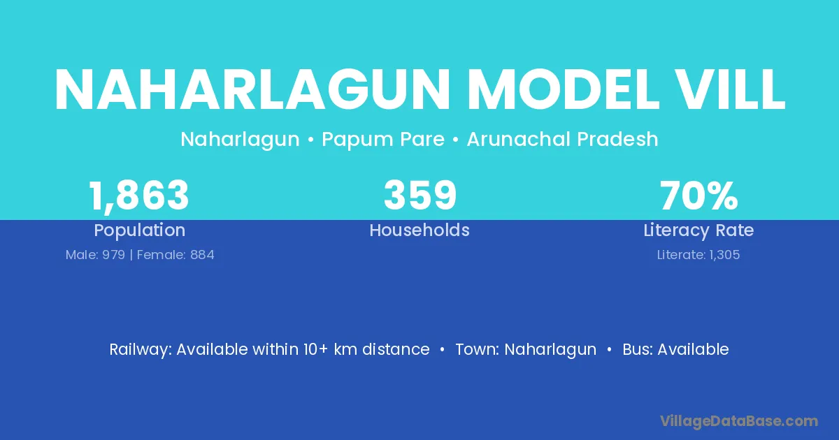 Naharlagun Model Vill village has a total population of 1,863 people, of which 979 are males and 884 are females.