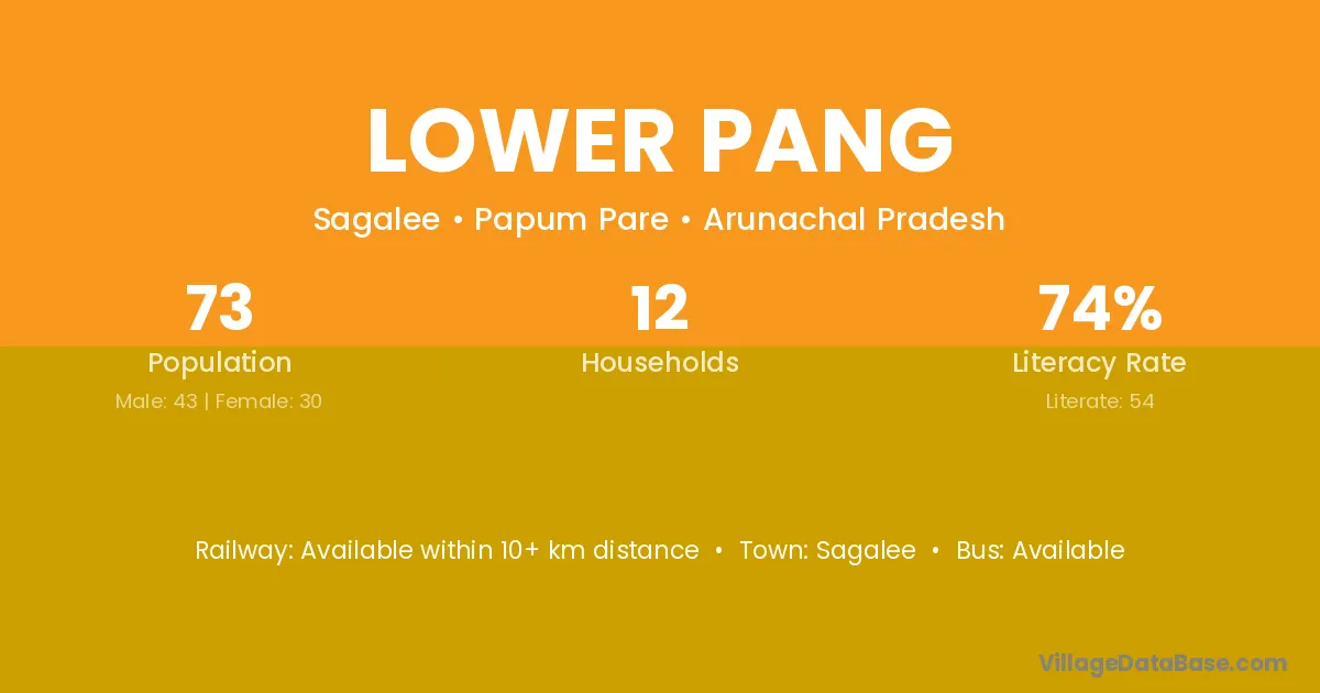 Lower Pang village has a total population of 73 people, of which 43 are males and 30 are females.