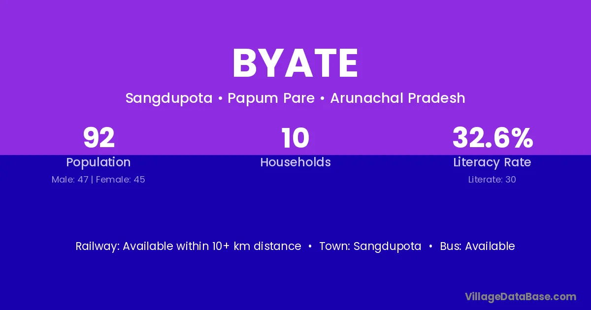 Byate village has a total population of 92 people, of which 47 are males and 45 are females.