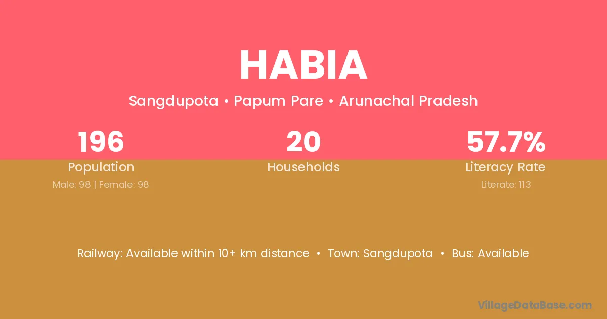 Habia village is located in the Sangdupota Circle of the Papum Pare district in Arunachal Pradesh .