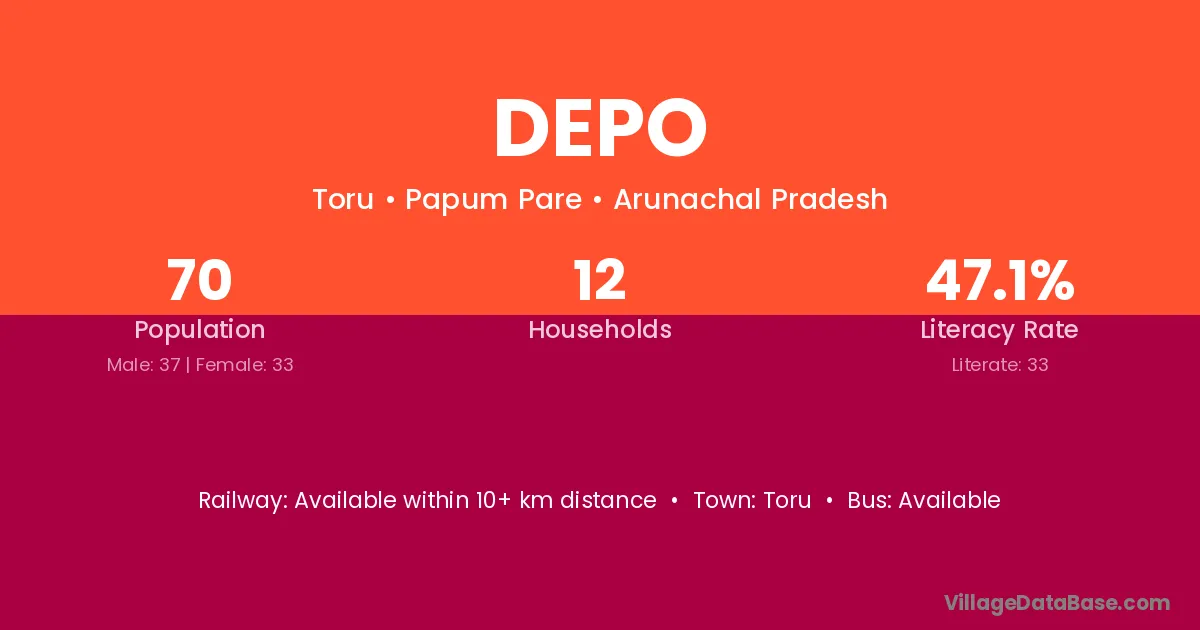 Depo village has a total population of 70 people, of which 37 are males and 33 are females.