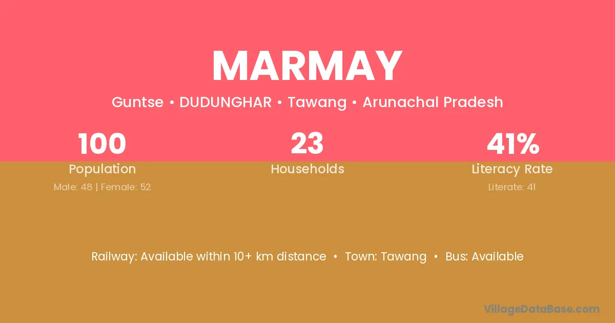 Marmay village is located in the DUDUNGHAR Circle of the Tawang district in Arunachal Pradesh .