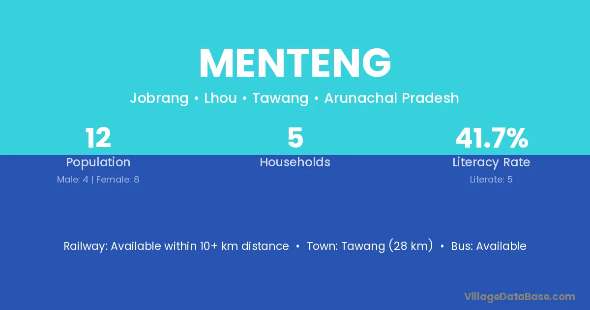Tawang (28 km) is the nearest town to Menteng village for major economic activities and is located approximately 28 km away.