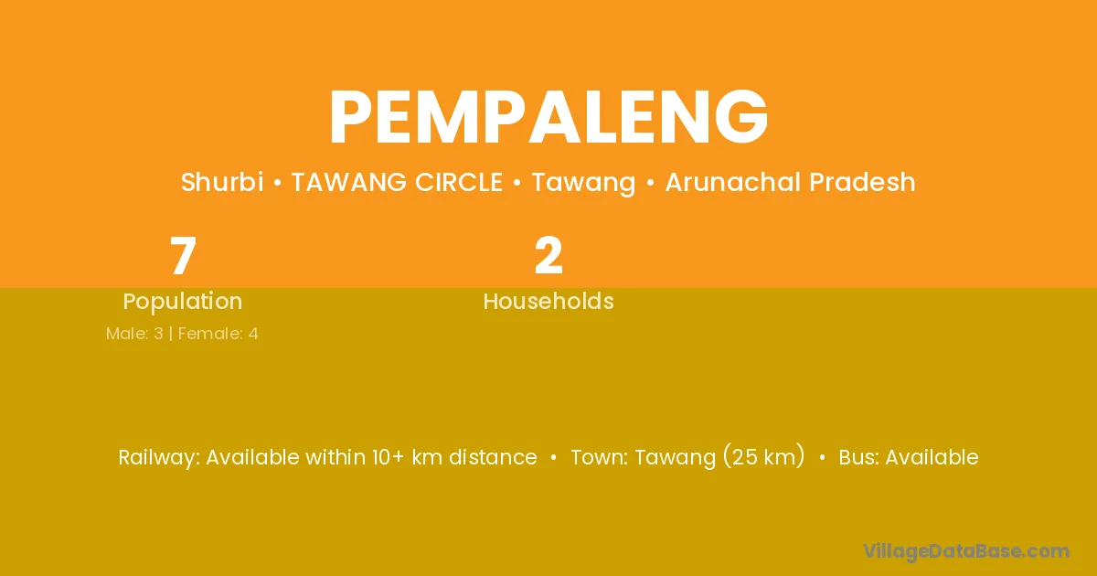 Tawang (25 km) is the nearest town to Pempaleng village for major economic activities and is located approximately 25 km away.