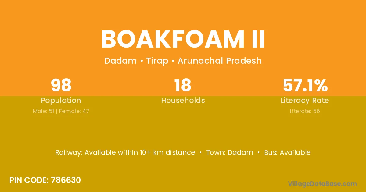 Boakfoam Ii village has a total population of 98 people, of which 51 are males and 47 are females.