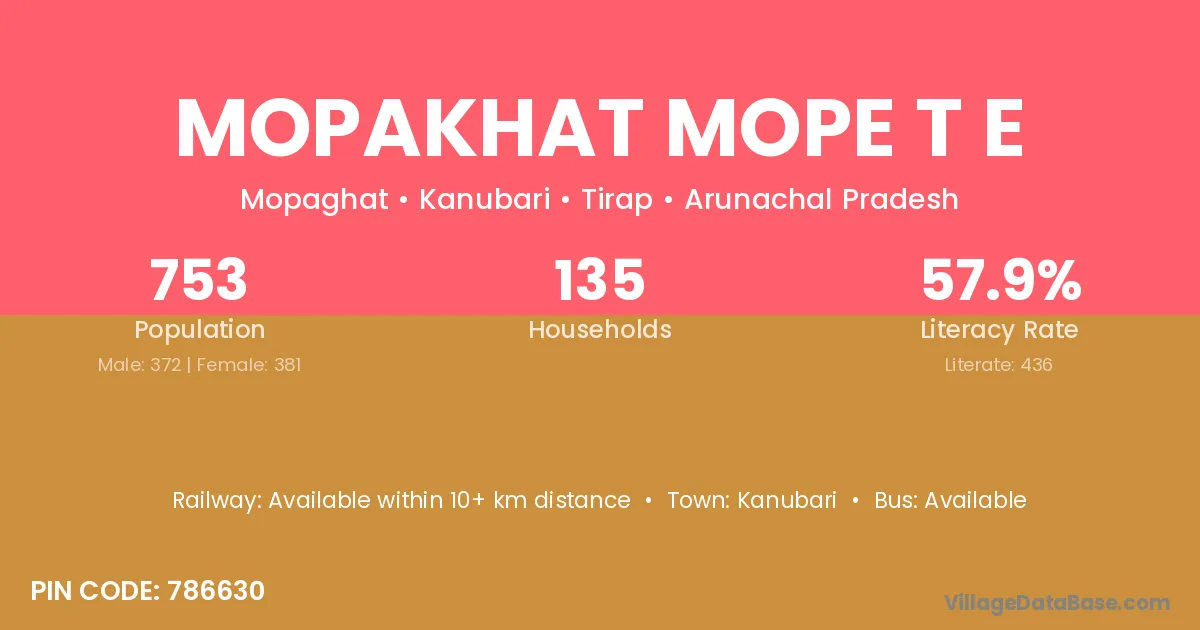 According to Census 2011 information, the village code of Mopakhat Mope T E village is 786630.