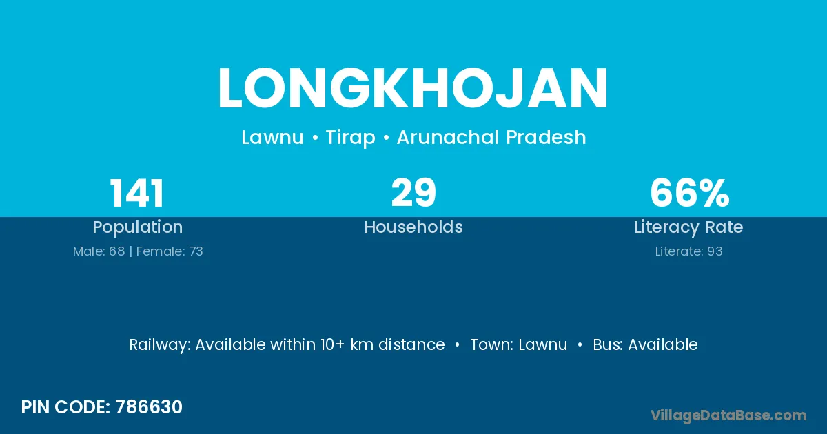 Longkhojan village has a total population of 141 people, of which 68 are males and 73 are females.