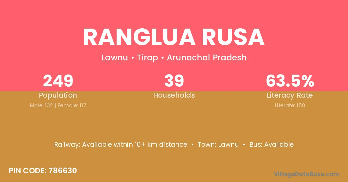 Ranglua Rusa village has a total population of 249 people, of which 132 are males and 117 are females.