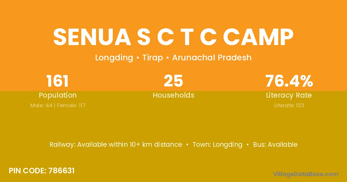 Senua S C T C Camp village has a total population of 161 people, of which 44 are males and 117 are females.