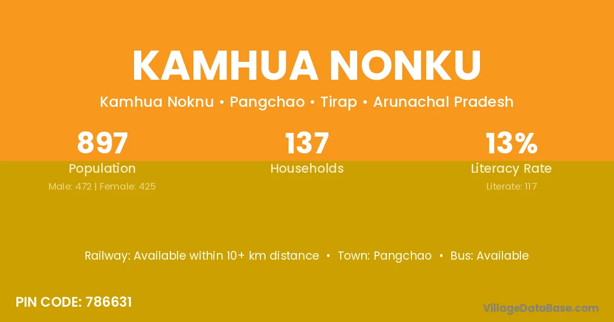 Kamhua Nonku village has a total population of 897 people, of which 472 are males and 425 are females.