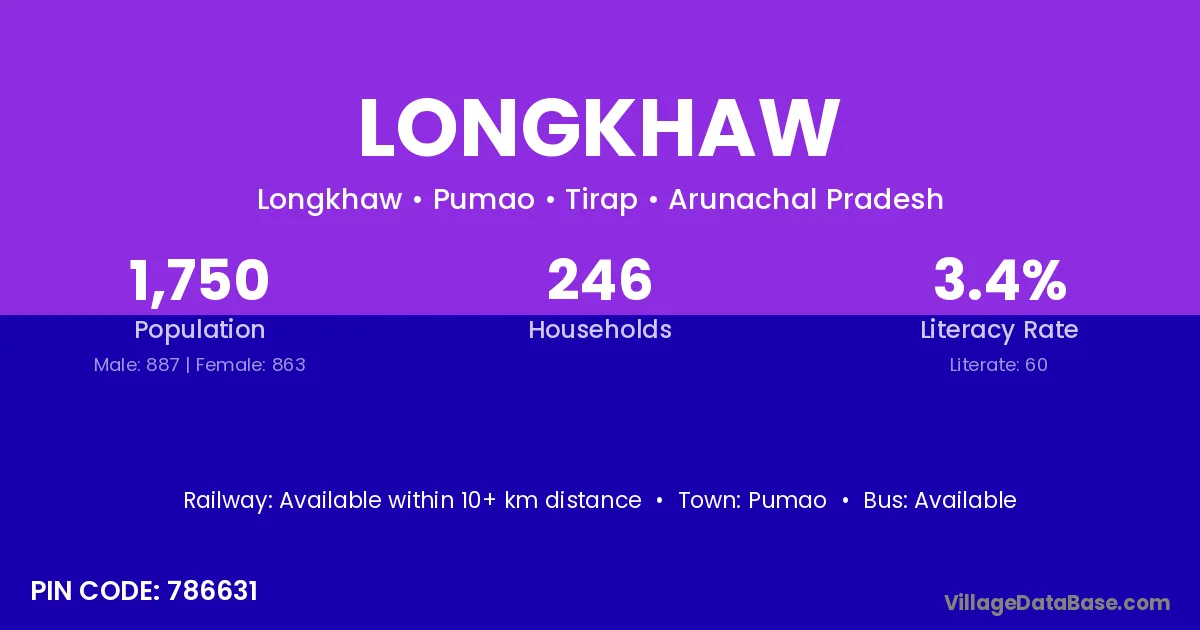Longkhaw village has a total population of 1,750 people, of which 887 are males and 863 are females.