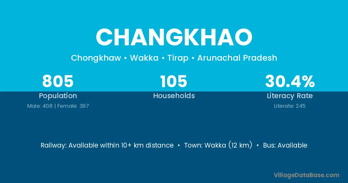 Changkhao village has a total population of 805 people, of which 408 are males and 397 are females.