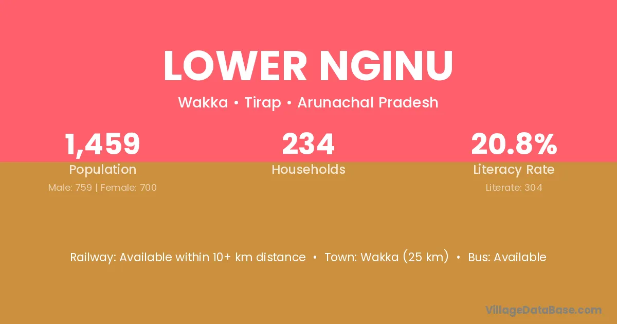 Lower Nginu village has a total population of 1,459 people, of which 759 are males and 700 are females.