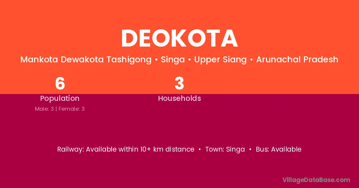 Deokota village has a total population of 6 people, of which 3 are males and 3 are females.