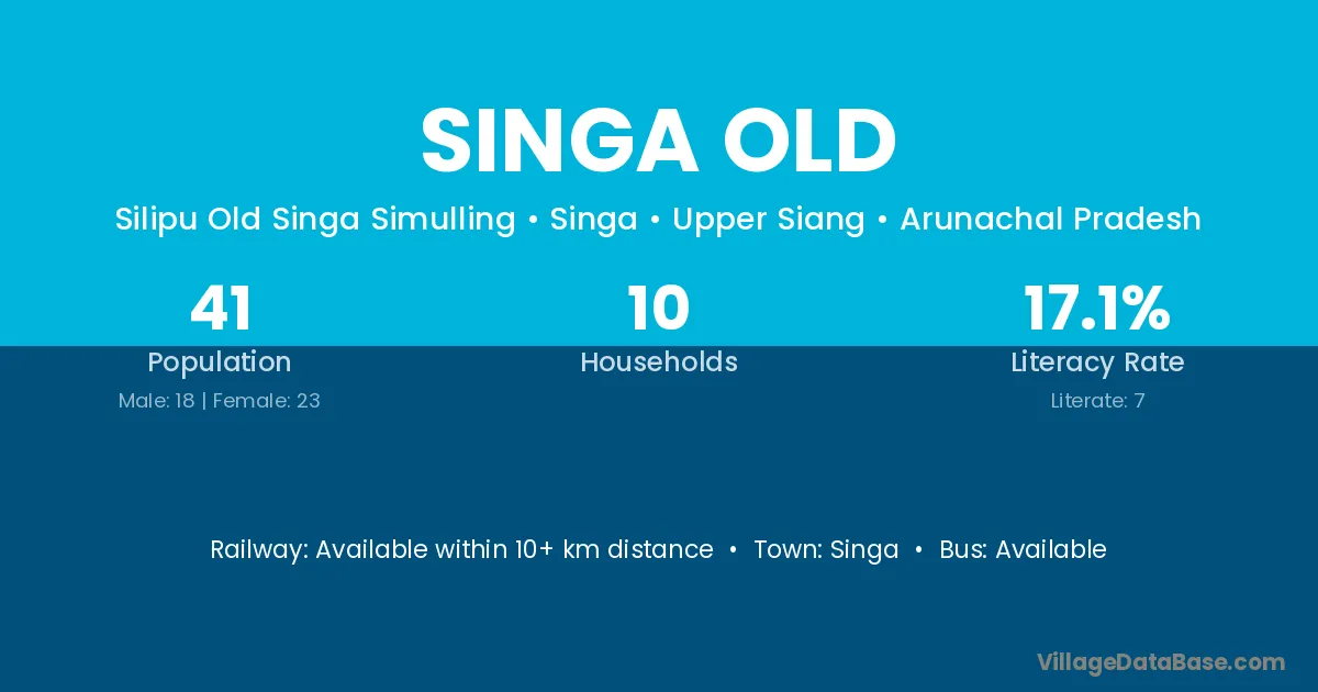 Singa Old village has a total population of 41 people, of which 18 are males and 23 are females.
