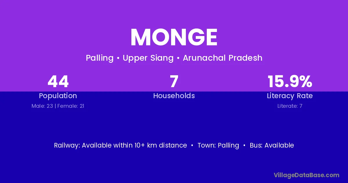 Tuting is the nearest town to Monge village for major economic activities