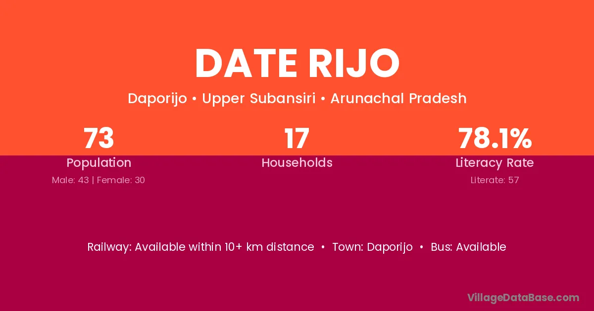 Date Rijo village has a total population of 73 people, of which 43 are males and 30 are females.