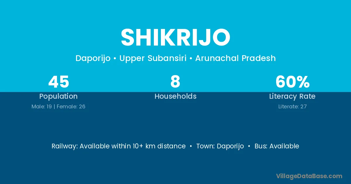 Shikrijo village has a total population of 45 people, of which 19 are males and 26 are females.