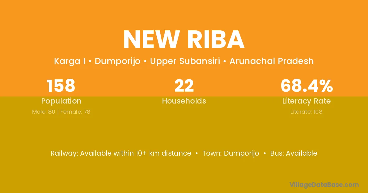 New Riba village has a total population of 158 people, of which 80 are males and 78 are females.