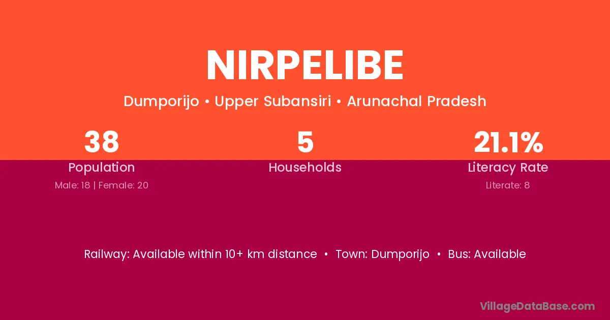 Nirpelibe village has a total population of 38 people, of which 18 are males and 20 are females.