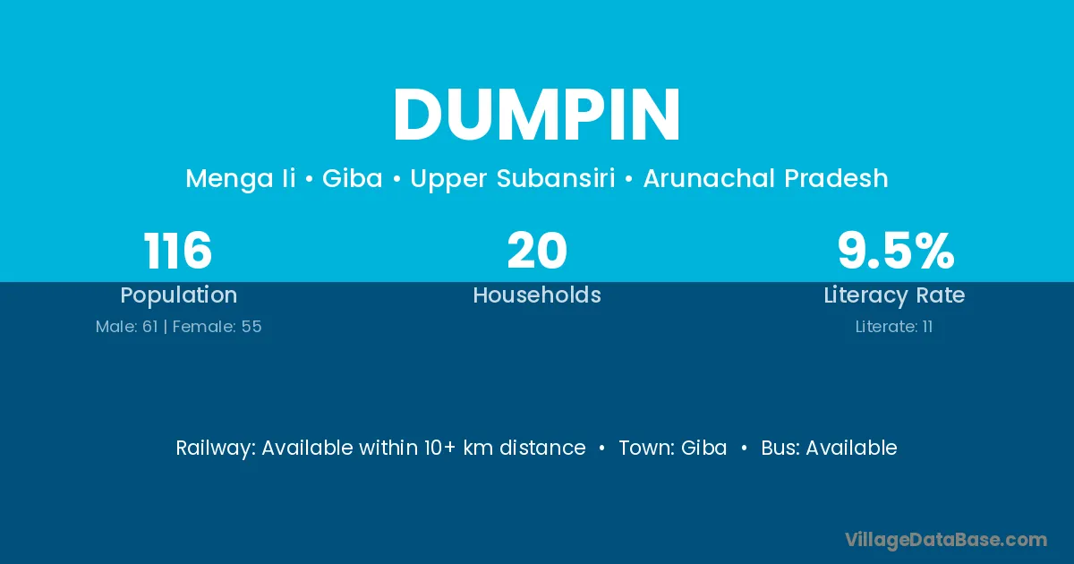 Dumpin village has a total population of 116 people, of which 61 are males and 55 are females.