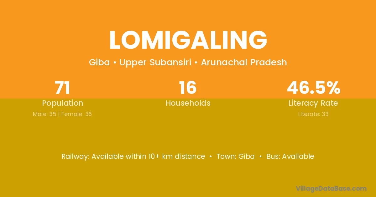 Lomigaling village has a total population of 71 people, of which 35 are males and 36 are females.