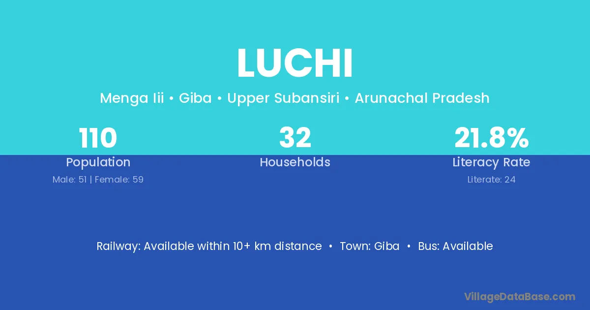 The literacy rate of Luchi village is 50.29%. Male literacy stands at 60.00% and female literacy at 40.91%.