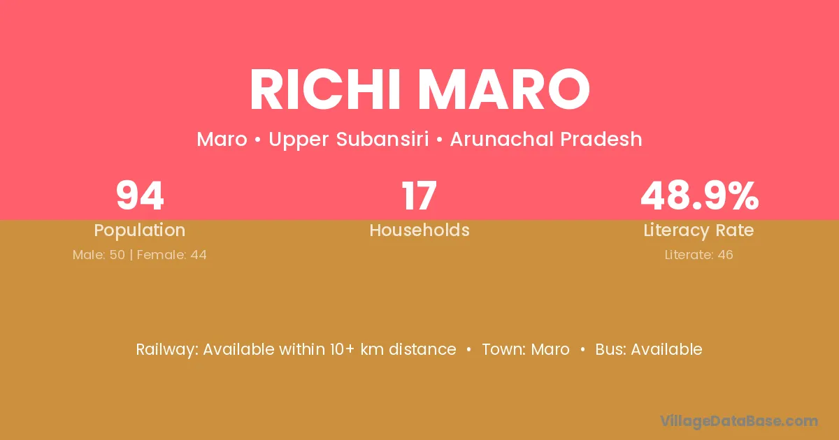 Richi Maro village has a total population of 94 people, of which 50 are males and 44 are females.