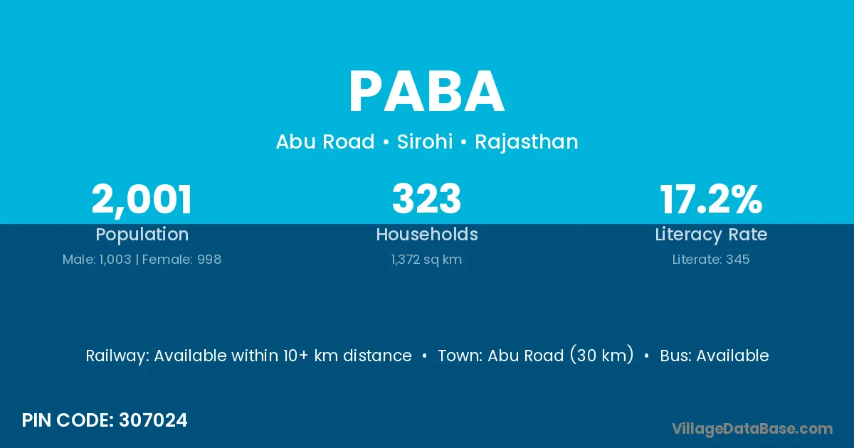 The literacy rate of Paba village is 51.72%. Male literacy stands at 63.04% and female literacy at 39.02%.