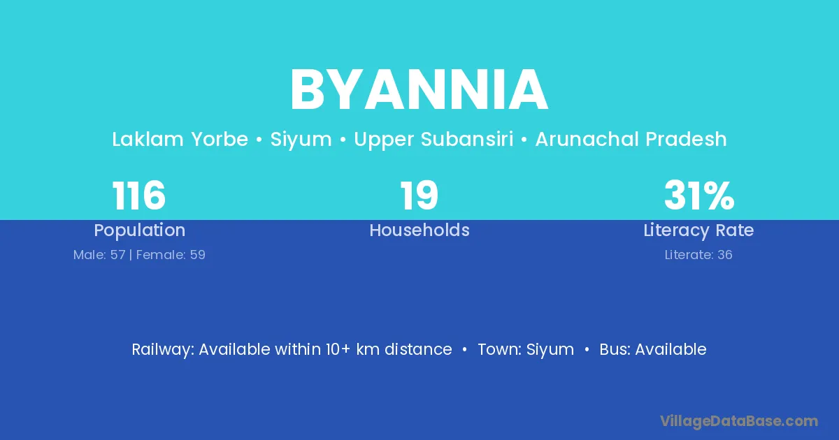 Byannia village has a total population of 116 people, of which 57 are males and 59 are females.