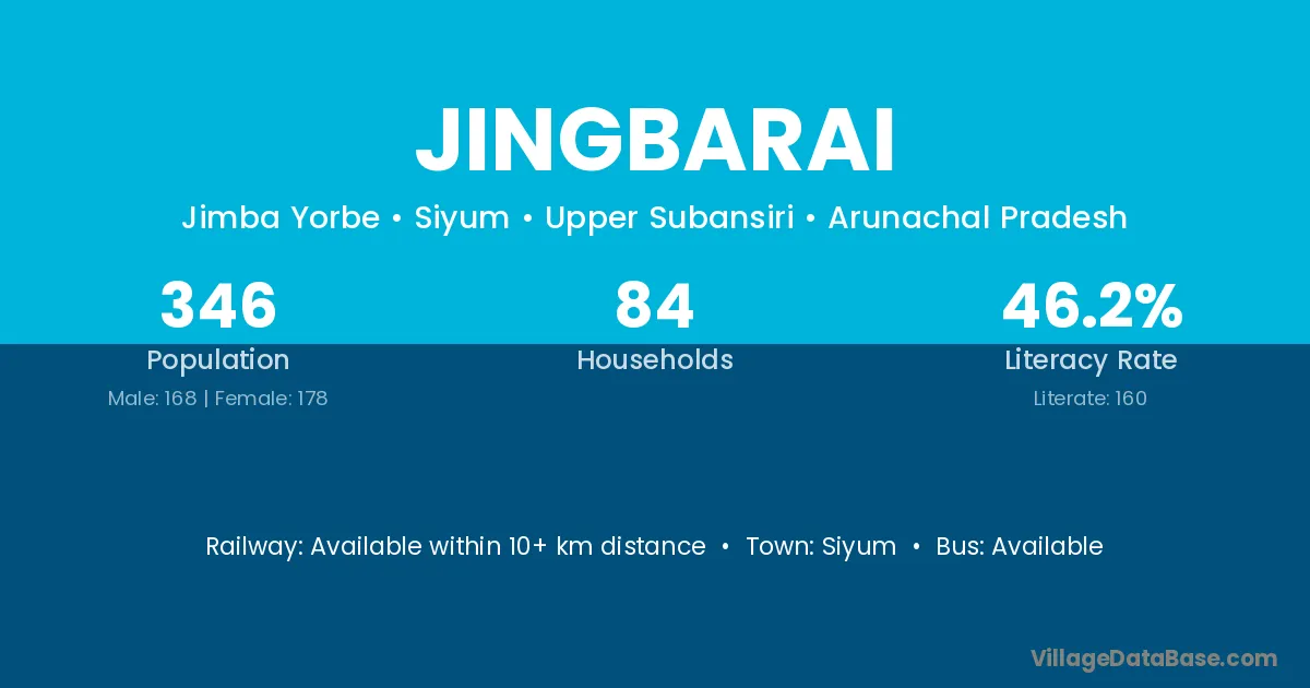Jingbarai village has a total population of 346 people, of which 168 are males and 178 are females.