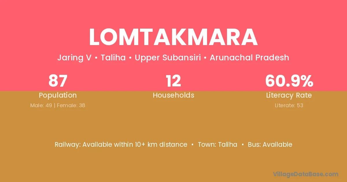 Lomtakmara village has a total population of 87 people, of which 49 are males and 38 are females.