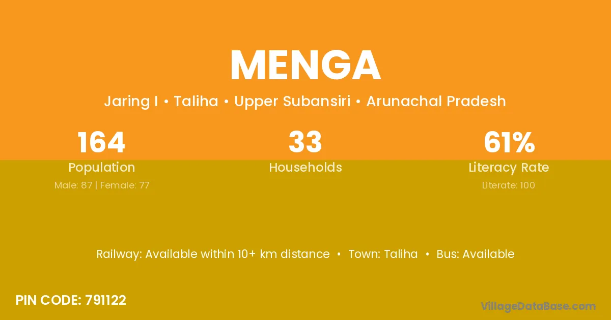 According to Census 2011 information, the village code of Menga village is 791122.