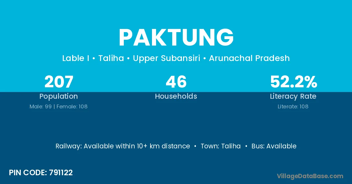 Paktung village has a total population of 207 people, of which 99 are males and 108 are females.