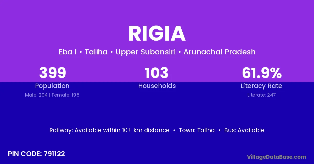 According to Census 2011 information, the village code of Rigia village is 791122.