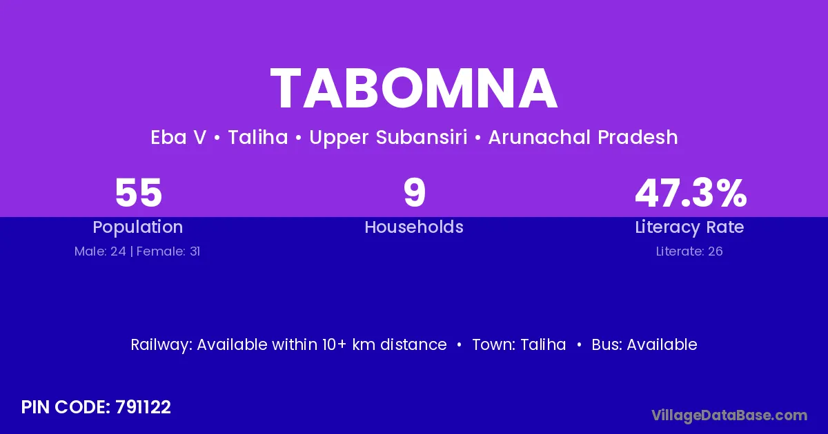 According to Census 2011 information, the village code of Tabomna village is 791122.