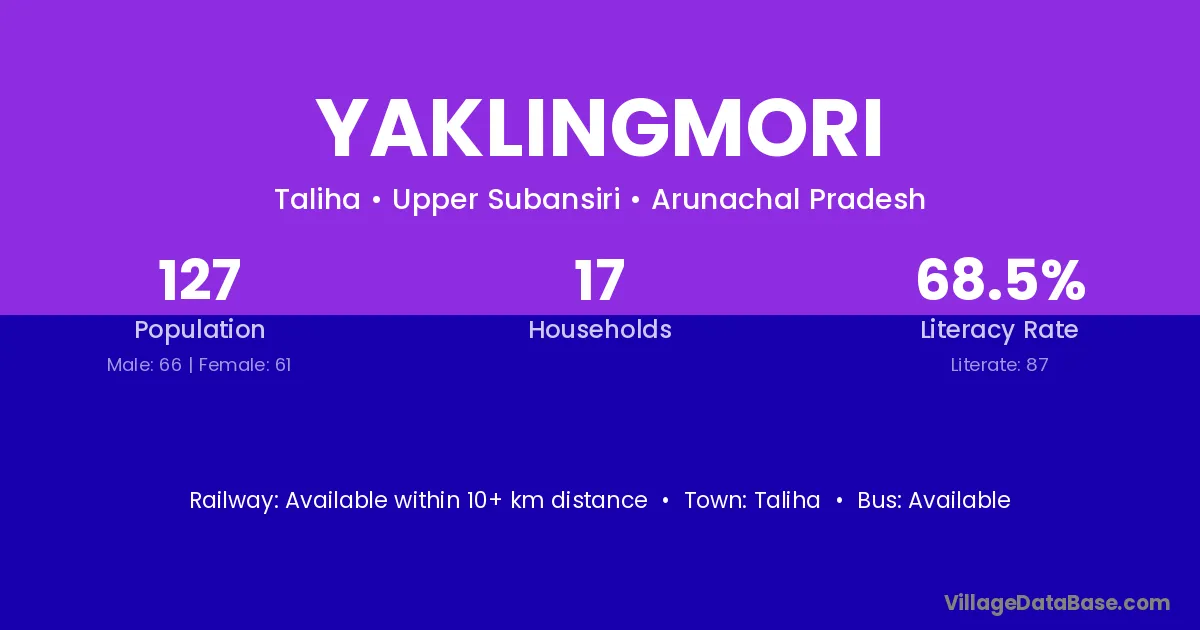 Yaklingmori village has a total population of 127 people, of which 66 are males and 61 are females.