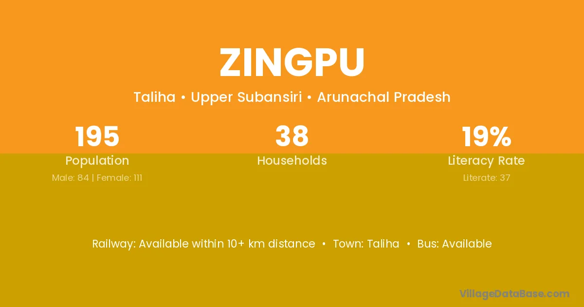 Zingpu village has a total population of 195 people, of which 84 are males and 111 are females.