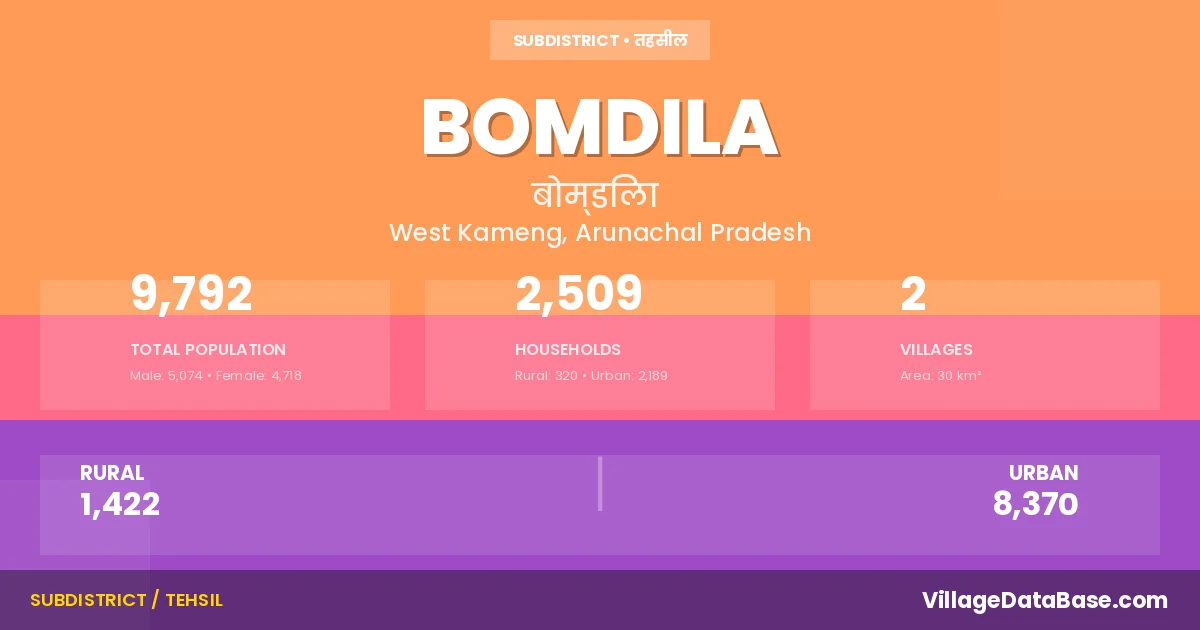 Bomdila Circle comprises about 2 villages. Below is a list of these villages along with information about their respective gram panchayats and the nearest town:
