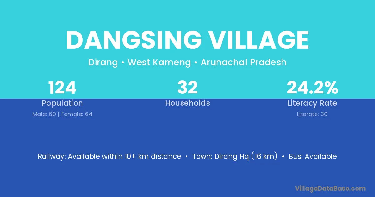 The literacy rate of Dangsing Village village is 24.19%. Male literacy stands at 31.67% and female literacy at 17.19%.