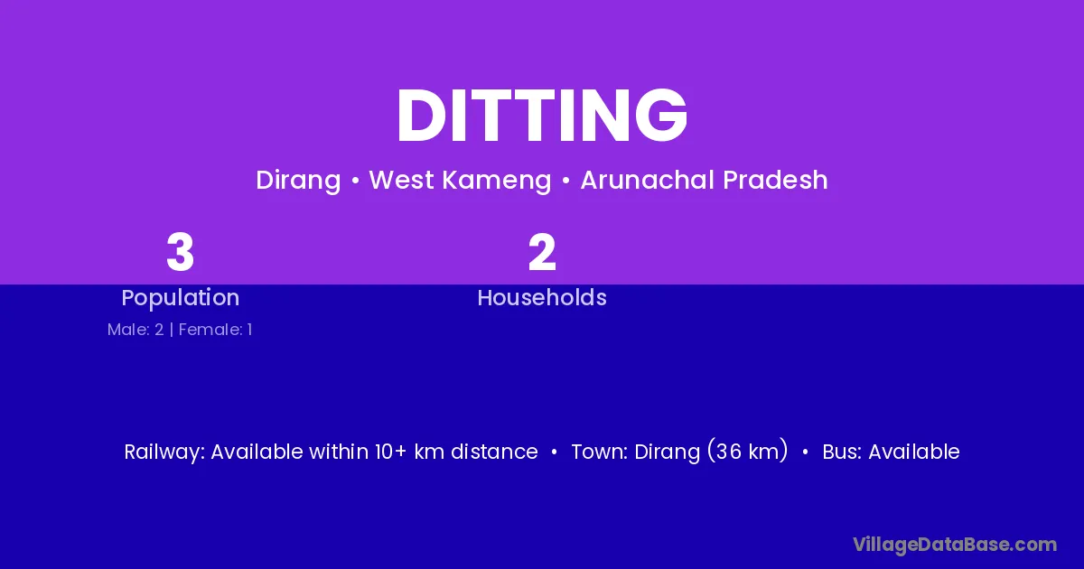 Dirang (36 km) is the nearest town to Ditting village for major economic activities and is located approximately 36 km away.
