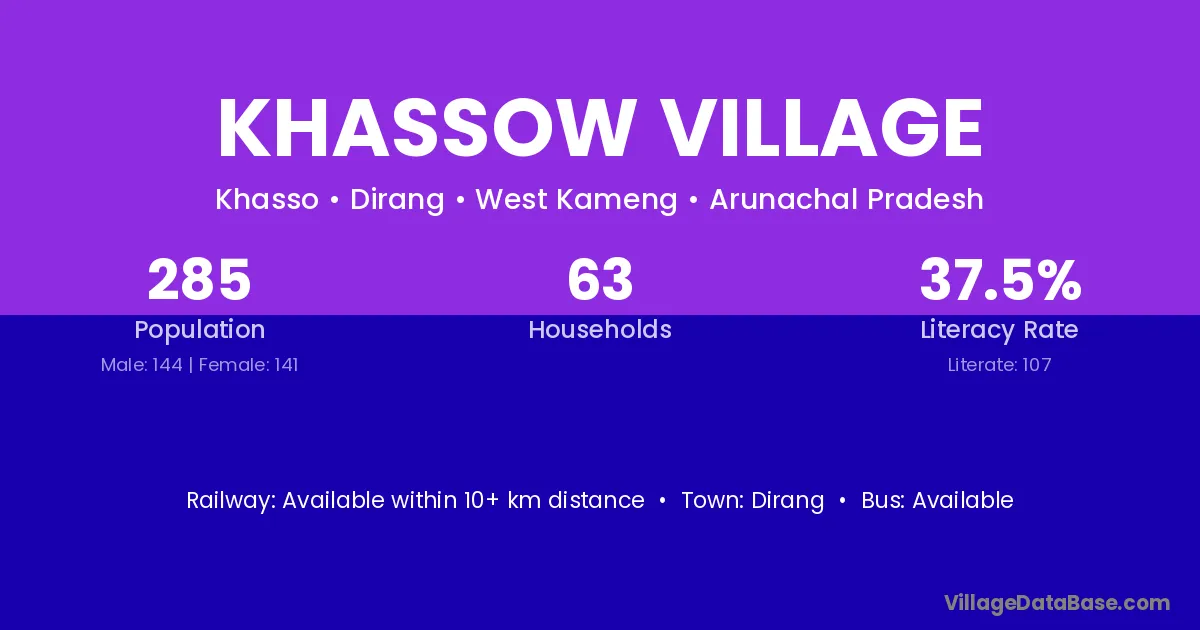 The literacy rate of Khassow Village village is 37.54%. Male literacy stands at 40.97% and female literacy at 34.04%.