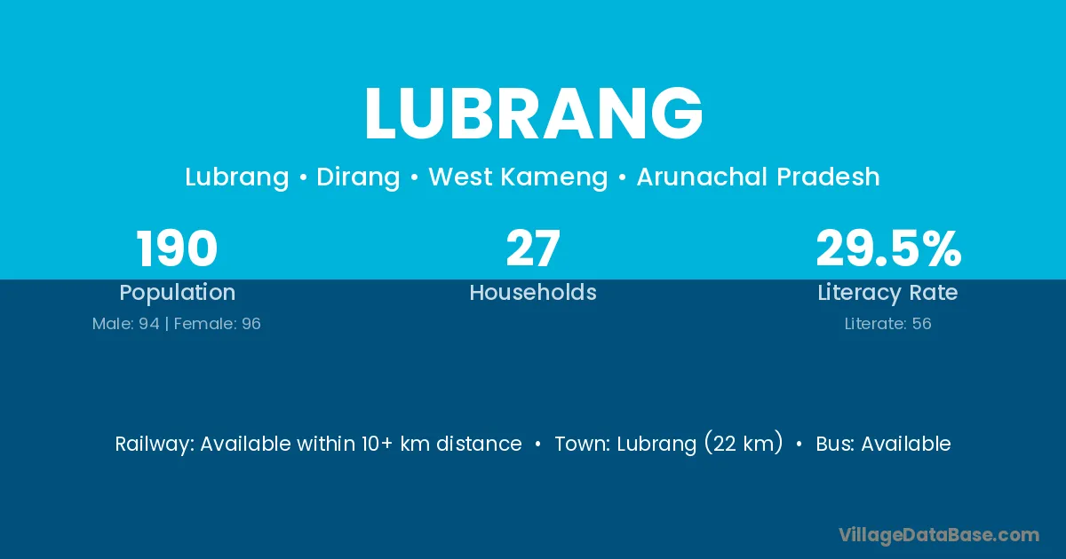 Lubrang village has a total population of 190 people, of which 94 are males and 96 are females.