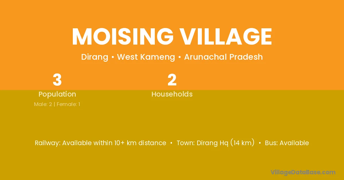 Moising Village village has a total population of 3 people, of which 2 are males and 1 are females.