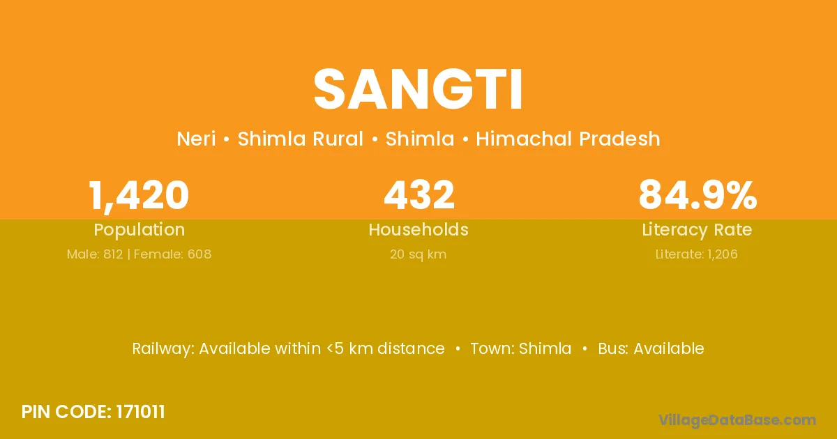 Sangti village has a total population of 630 people, of which 316 are males and 314 are females.