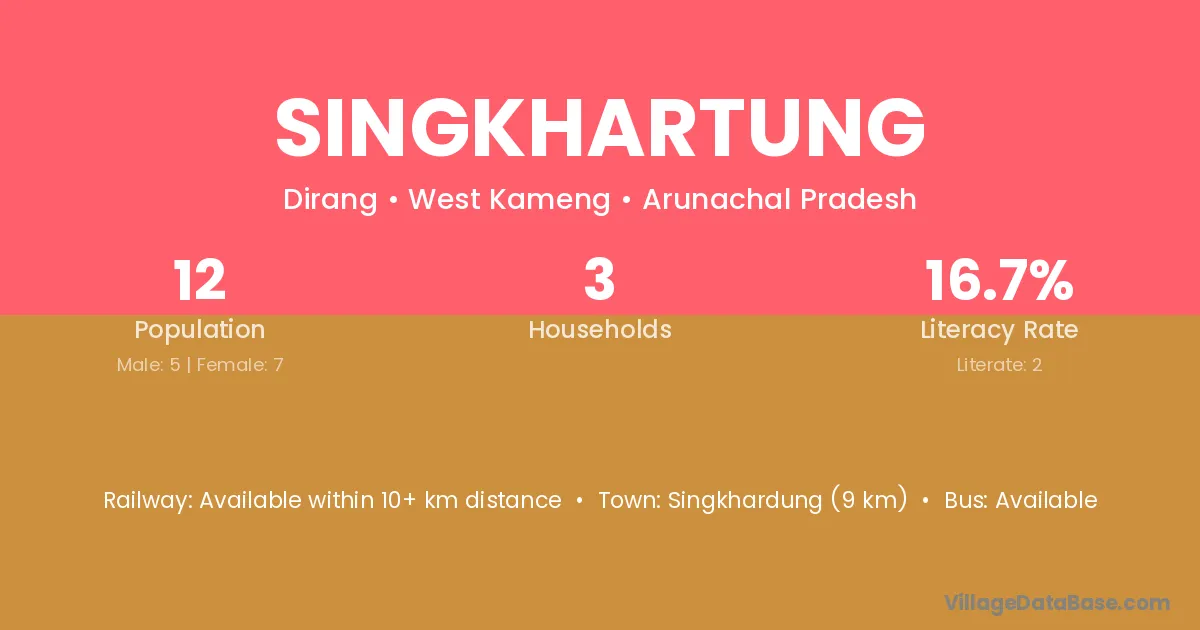 Singkhartung village has a total population of 12 people, of which 5 are males and 7 are females.