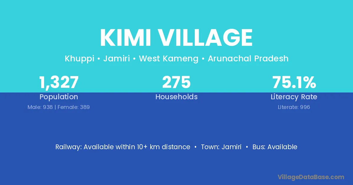 Kimi Village village has a total population of 1,327 people, of which 938 are males and 389 are females.