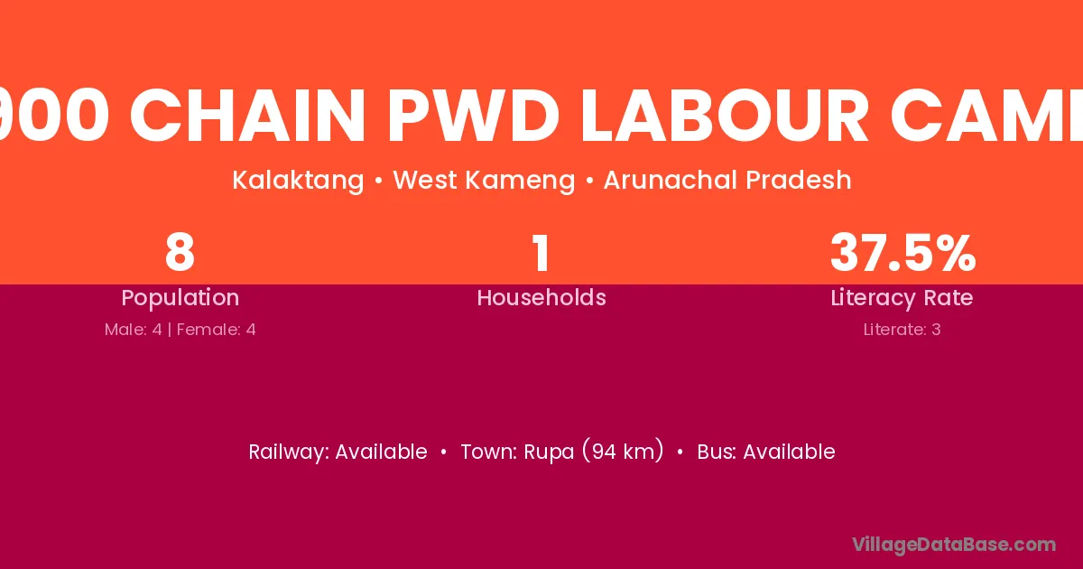 Rupa (94 km) is the nearest town to 900 Chain Pwd Labour Camp village for major economic activities and is located approximately 94 km away.