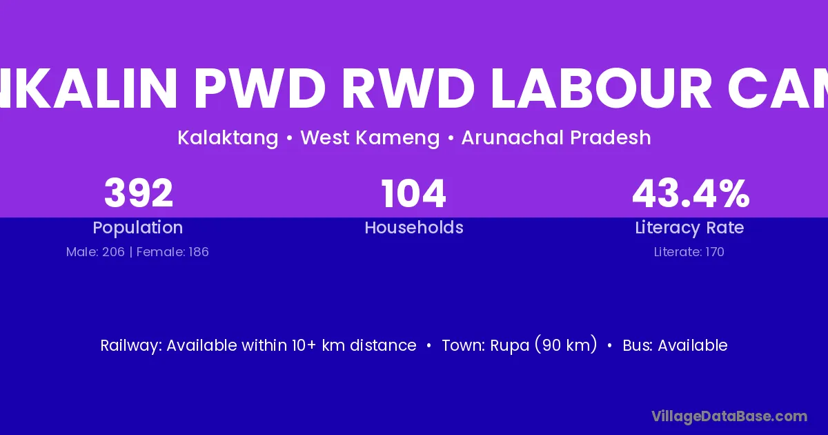 Rupa (90 km) is the nearest town to Ankalin Pwd Rwd Labour Camp village for major economic activities and is located approximately 90 km away.