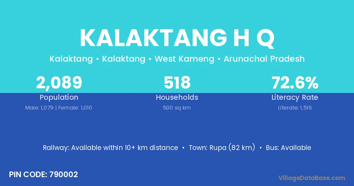 Kalaktang H Q village has a total population of 2,089 people, of which 1,079 are males and 1,010 are females.